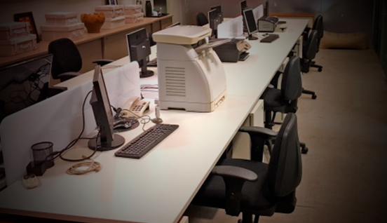 Decoração atrativa e moderna, criando um ambiente propício ao trabalho.